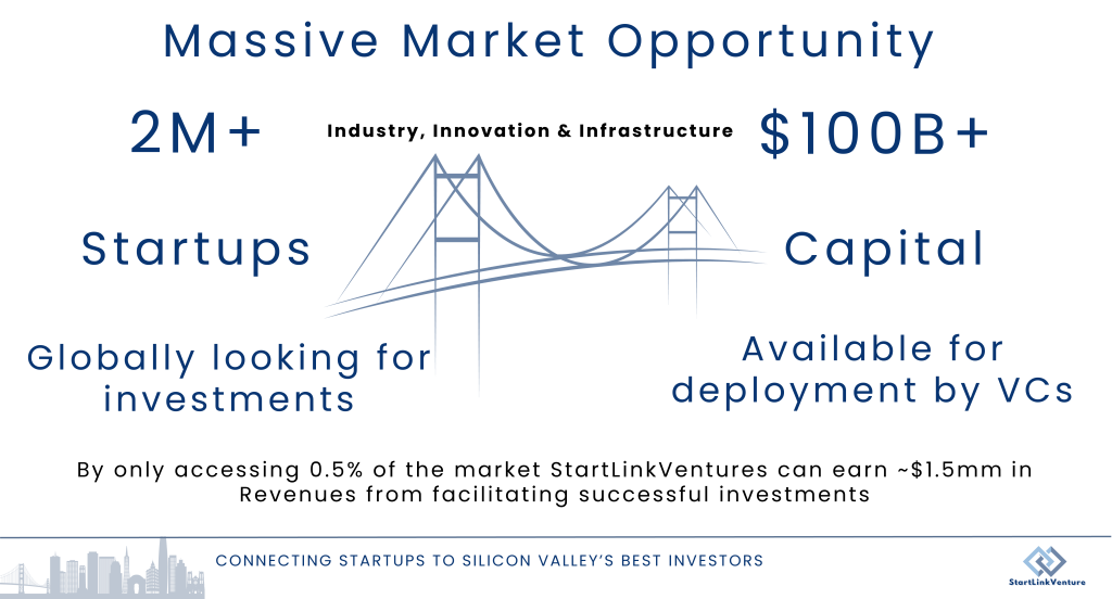 StartLinkVentures is an AI-powered platform that connects startups across the globe with top Venture Capitalists and Angel Investors in the Silicon Valley, helping companies to secure funding and accelerate growth